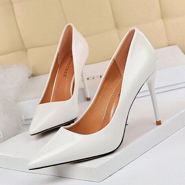 European Style Fashion Simple Professional OL High-heeled Shoes Thin Heels Shallow Mouth Pointed Lacquer Leateher Single Shoes