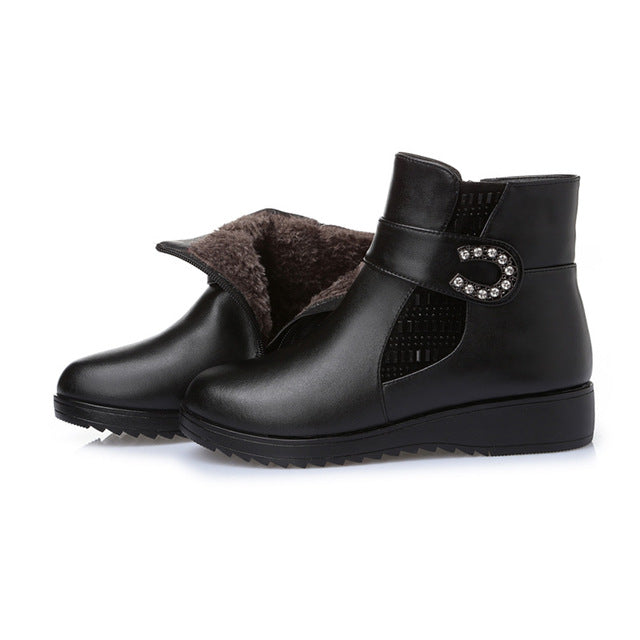 Plus size(35-43) winter women genuine leather wedges snow boots wool fur ankle boots warm shoes women boots