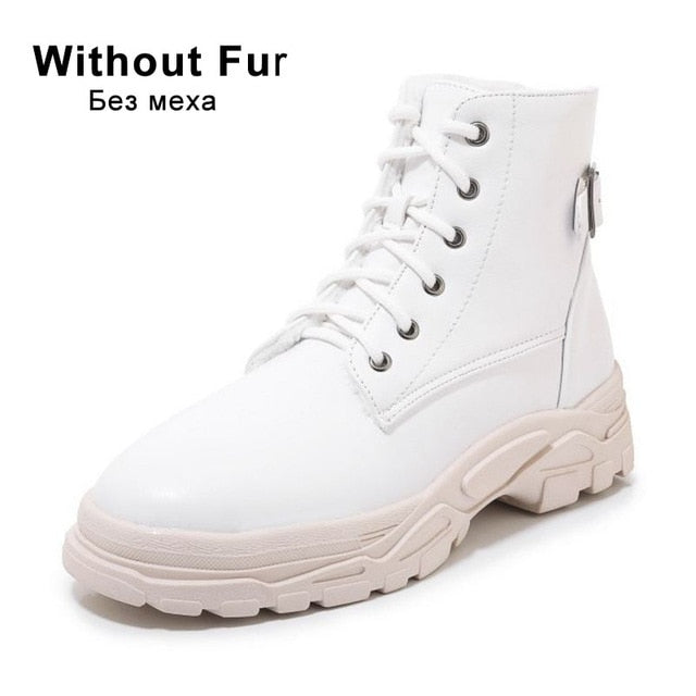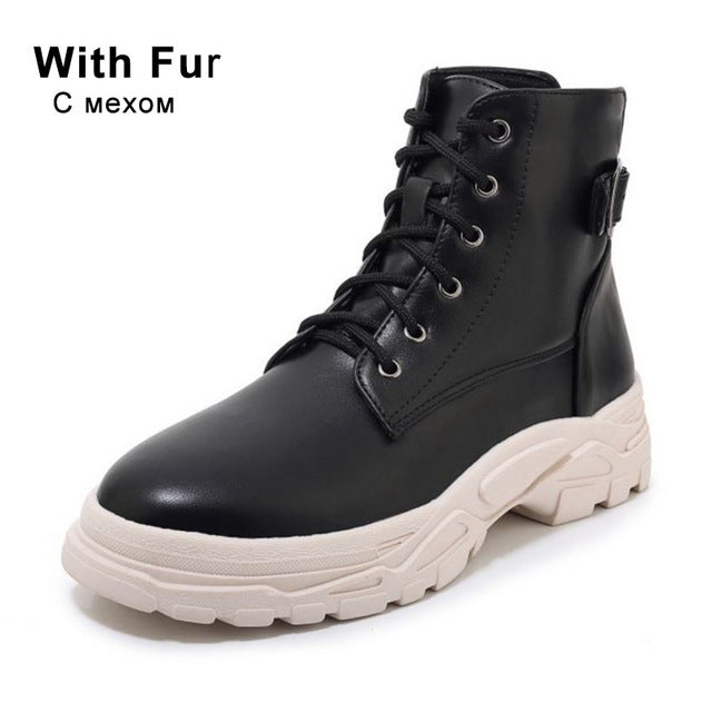 Taoffen Women New Fashion Plus Size 29-46 Warm Ankle Boots Thick Sole Pu Leather Casual Winter Shoes Woman Short Boots Footwear