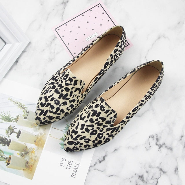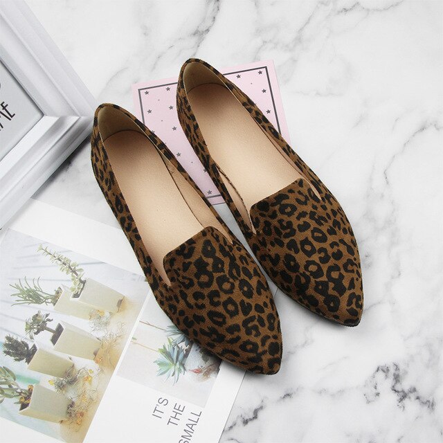 Lady Rome Style Leopard p Plus size 12 11 44 No Heels Square toe shoes Women Soft Sole Slip-on Breathable Brown White Printing