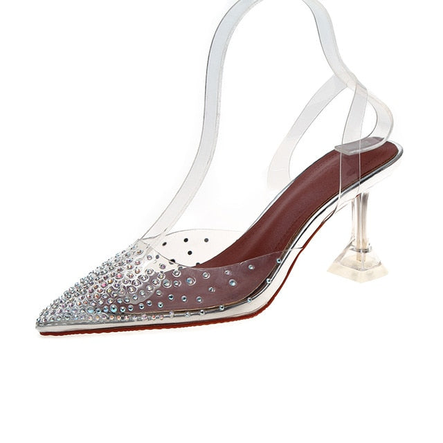 Transparent Crystal Wedding Party Shoes for Women High Heels Sandals Thin Heels Slingback Pumps Women Shoes Autumn Womne Shoes
