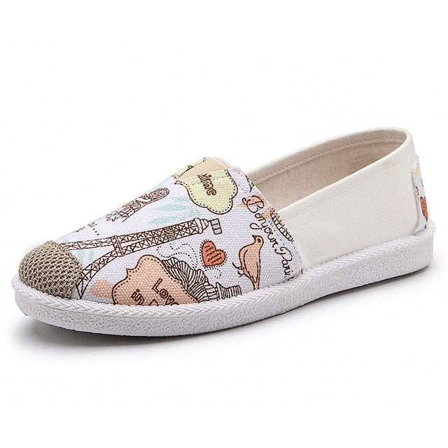 Autumn Women Loafers Shoes Espadrille Graffiti Comfort Flat Platform Creepers Shoes Slip On Shoes Women Footwear Ladies Shoes