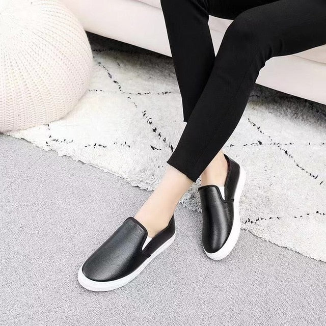 Black Platform Shoes Woman College Style Winter Keep Warm Casual Loafers Leather Shoes Slip-On Ladies Flats Platform Shoes